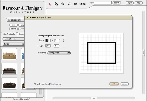 インテリアショップ Raymour & Flanigan Furniture のサイトでは、取扱商品を自由にレイアウト・シミュレーションできる『Room Planner』というツールが無料で提供されています。