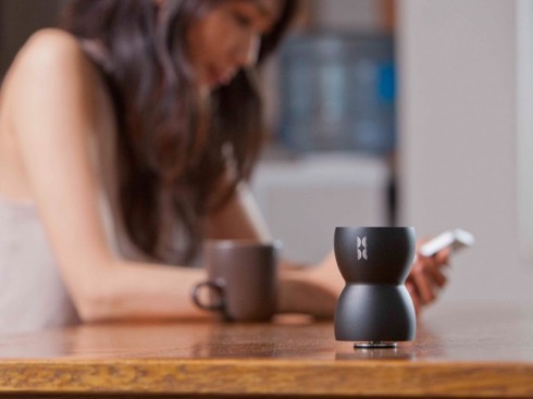 不思議な形をしたこちらのスピーカー。表面共振を活用し、設置したテーブルなどをスピーカーに変えてしまうという驚きの仕組みを有しています。