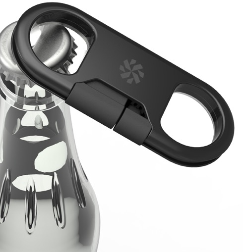 コネクタをコンパクトなケースに収めることができるこちらのLightningケーブル。ケースはボトルオープナー(栓抜き)にもなっており、いざという時に役立ちます。