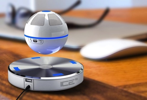 マグネット式で宙に浮かぶこちらのスピーカー。BluetoothやNFCで接続したスマホの音楽が再生でき、USBコネクタ経由で充電もできます。
