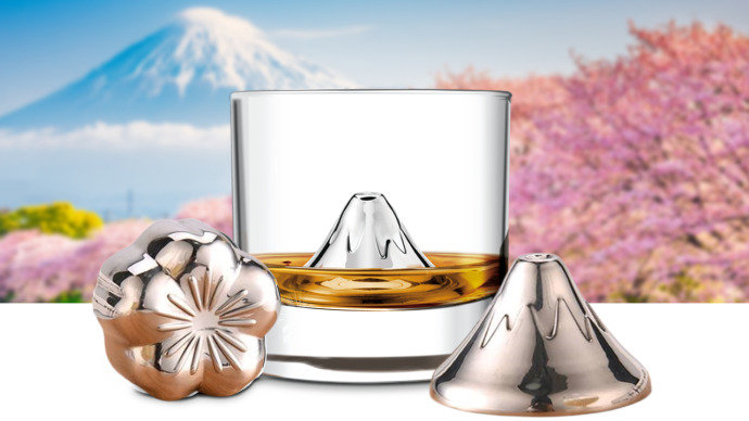 富士山や桜をモチーフにしたこちらのステンレスアイスキューブ。付属ケースで4時間冷凍することで、飲み物を薄めず中身を冷やすことができます。