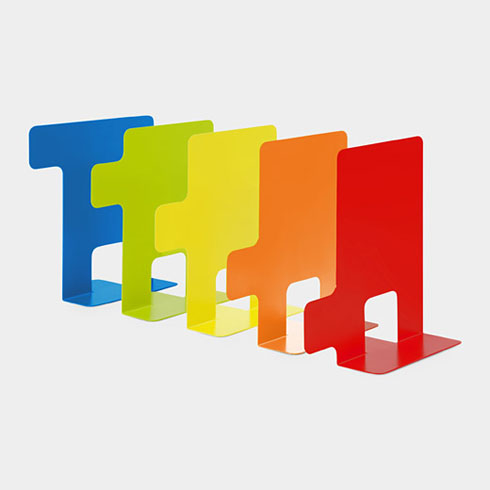 シンプルなブックエンドにタブ(インデックス)が付いたこのアイテム。色もカラフルに分かれているので、より区別がしやすそうです。