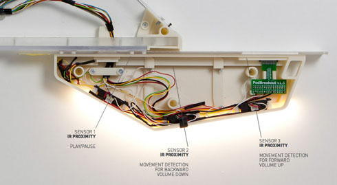 しかも、ハンドジャスチャーで音楽プレーヤーの操作が出来るというハイテク仕様。部屋でのBGM用にiPhoneやiPodを使っている方にいかが?(I New Idea Homepage)