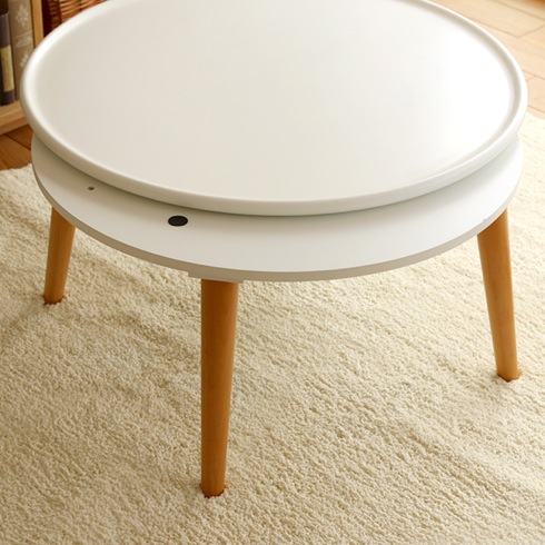 ビーチ素材の脚に真っ白な天板という、こたつにしては珍しいナチュラルモダンなデザインのこちら。特に注目したいのが、天板がトレー仕様になっている点。飲み物をこぼしても慌てることなくサッと拭き取れ、床やコタツ布団を汚す心配がないのが心強いですね。
